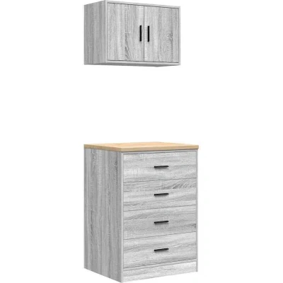 ManoManoGeneral description These garage cabinets are an excellent choice for organizing all your DIY tools and materials in the garage, storage room, or workshop. Made from durable pinewood and engineered wood, they ensure stability and sturdiness for long-lasting use. Technical specifications Colour: Grey sonoma Max. weight capacity: 60 kg Garage storage cabinet dimensions: 60 x 51 x 85 cm (W x D x H) Max. weight capacity (per drawer): 5 kg Garage wall cabinet dimensions: 60 x 30 x 41 cm (W x D x H) Worktop material: Solid pinewood (untreated) Cabinet material: Engineered wood Compatibility and accessories Screws and plugs for inside the wall are not included. It is advised to find and use screws and plugs suitable specifically for your walls. Installation Assembly required: Yes Please read and follow each step of the instructions. Usage This tool cabinet allows you to keep your frequently used tools within easy reach, making it convenient to access everything you need for your next
