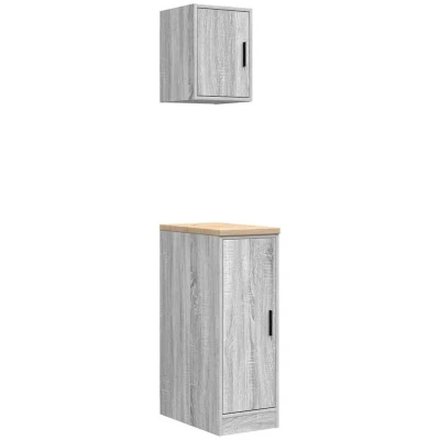 ManoManoGeneral description These garage cabinets are an excellent choice for organizing all your DIY tools and materials in the garage, storage room, or workshop. Made from durable pinewood and engineered wood, they ensure stability and sturdiness for long-lasting use. Technical specifications Colour: Grey sonoma Assembly required: Yes Max. weight capacity: 60 kg Garage storage cabinet: Worktop material: Solid pinewood (untreated) Cabinet material: Engineered wood Dimensions: 30 x 51 x 85 cm (W x D x H) Max. weight capacity (per shelf): 20 kg Garage wall cabinet: Material: Engineered wood Dimensions: 30 x 30 x 41 cm (W x D x H) Usage This tool cabinet allows you to keep your frequently used tools within easy reach, making it convenient to access everything you need for your next project. The wooden worktop provides a sturdy surface for various tasks, such as repairs, assembly, or DIY projects. This garage storage cabinet provides plenty of secure space, making it ideal for organizing items