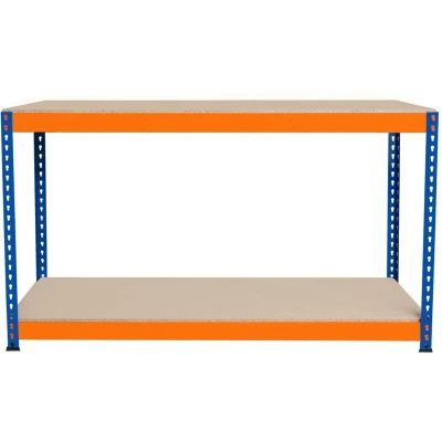 Garage Workbench S Rax 2 Shelf 150cm x 45cm 90cm Workstation Heavy Duty Steel Chipboard 300kg Capacity Per Adjustable Layout Boltless Assembly Rubber Feet Reinforced Support Bars Warehouse