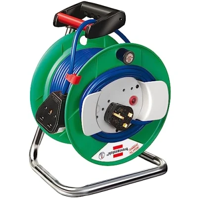 Cable drum with rubberised socket with 25m cable length H05VV-F3G1.5 and integrated safety indicator, garden reel drum for outdoors Robust cable reel (240 V/13 A) with thermal cut-out protection against overheating Portable drum for moving around while working outdoors and operating electrical garden tools (lawn mowers, trimmers, etc.), working at height Ergonomic cable guide handle for easy winding and rewinding Scope of delivery: 1 Garant garden cable reel in blue cable colour (25m, ruber socket, reel Ø 240mm) - in best brennenstuhl quality, Manufacturer: Brennenstuhl