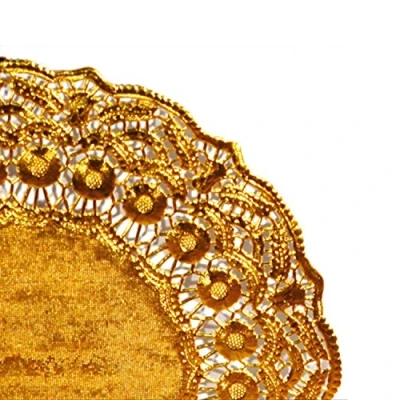 Made of litos metal Measures 31 cm in diameter Disposable placemats with attractive lace designs