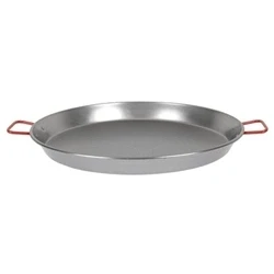 44(H) x 500(Ø)mm. Carbon Steel. Silver. Strong, high gauge steel construction - ideal for heavy duty use. Suitable for 400mm classic or 300mm and 400mm gas paella burners or open fire. Strong signature red handles - easy to reposition pan.