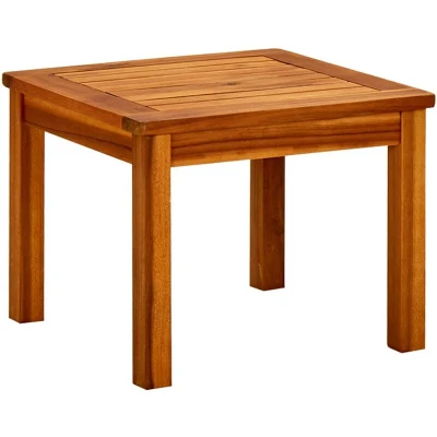 General description Enjoy a cozy coffee time with your family or friends in your outdoor space with this stylish wooden coffee table! Made of solid acacia wood with a natural oil finish, this table is weather resistant and durable. The sturdy tabletop features a slatted design, providing ample space for snacks, fruit baskets, decorative items, and other essentials. Each piece is unique due to the natural variations in color and grain. Technical specifications Material: Solid acacia wood with a natural oil finish Dimensions: 45 x 45 x 36 cm (L x W x H) Weather resistant Features slatted tabletop design Assembly required: Yes Other information To extend the life of your outdoor furniture, it is recommended to protect it with a waterproof cover.