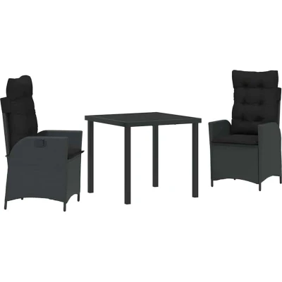 Garden Dining Set 3 pcs Black Poly Rattan Vidaxl