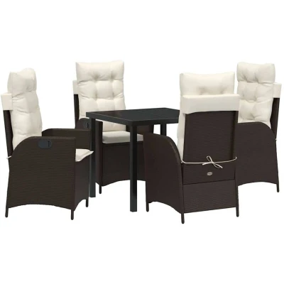Garden Dining Set 5 pcs Brown Poly Rattan Vidaxl