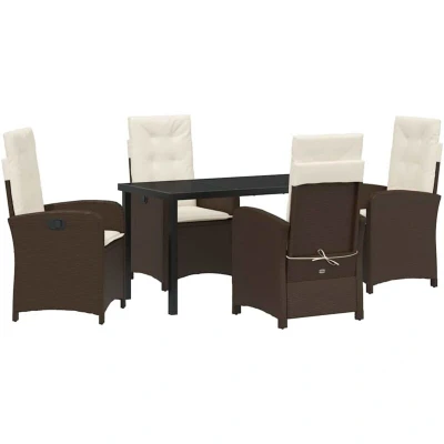 Garden Dining Set 5 pcs Brown Poly Rattan Vidaxl