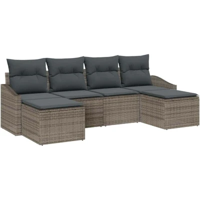 Garden Dining Set 6 pcs Grey Poly Rattan, Powder Coated Steel Vidaxl