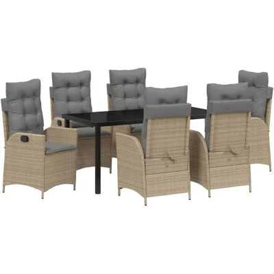 Garden Dining Set 7 pcs Beige Poly Rattan Vidaxl