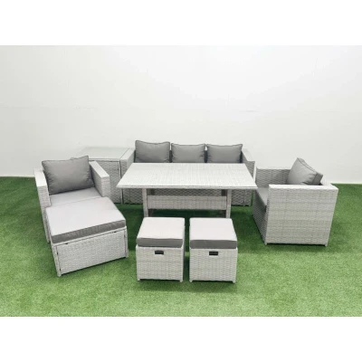 Garden Dining Set Outdoor Rattan Furniture with Sofa Table 2 Chairs 3 Footstools Side Light Grey Mixed Fimous