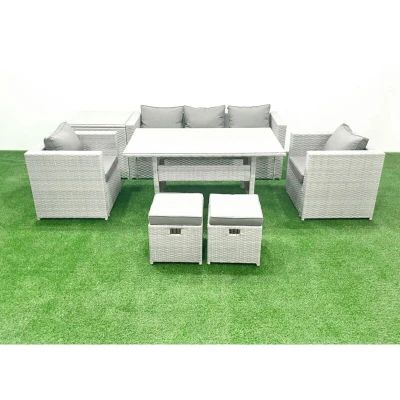Garden Dining Set Outdoor Rattan Furniture with Sofa Table 2 Chairs Small Footstools Side Light Grey Mixed Fimous