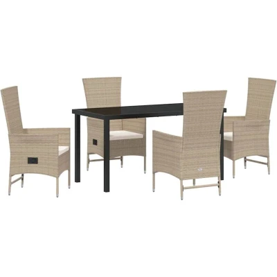 Garden Dining Set with Cushion 5 pcs Beige Poly Rattan Vidaxl