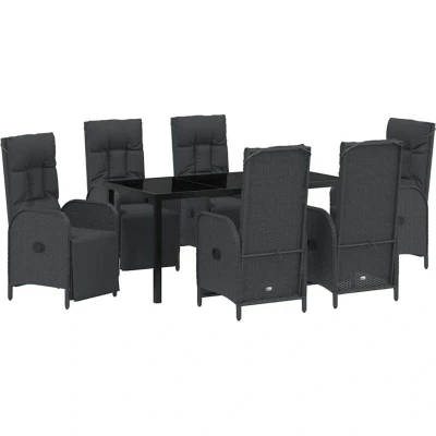 Garden Dining Set with Cushion 7 pcs Black Poly rattan Vidaxl