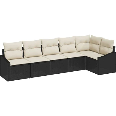 ManoManoGeneral description This lovely Rectangular Outdoor Sofa for 6 People is a perfect blend of style and function, making it an ideal addition to any outdoor area. Designed with gardens and terraces in mind, this contemporary piece features clean lines and a smart design. The rich poly rattan pairs beautifully with the sleek powder-coated steel frame, creating a comfortable spot for relaxing in your garden. Imagine enjoying sunny afternoons with friends and family, surrounded by a beautiful setup that complements nature. Technical specifications Colour: Black and cream Material: Poly rattan and powder-coated steel Seat width: 55 cm Seat depth: 55 cm Max weight: 110 kg Assembly required: Yes Included components: 1 x Corner seat, 3 x Centre seat, 2 x Arm sofa EAN: 8721288356772 SKU: 3355406 Care & Maintenance Cover the sofa when not in use to protect it from the elements. Regular cleaning and quick covering during bad weather will help maintain its appearance for years. Other information