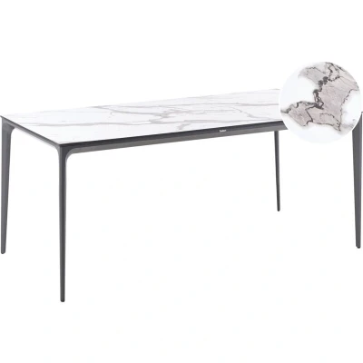 Garden Dining Table HPL Top Aluminium Frame UV Water Rust Resistant Dark Grey with White Marble Sovareto