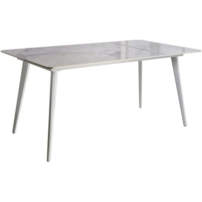 Outdoor and Indoor Dining Table with Gloss Top. This dining table is an excellent choice for both indoor and outdoor spaces, designed to withstand the demands of daily life. The durable sintered stone top, featuring a gloss finish and subtle marble effect, brings a touch of elegance, while the sturdy metal legs provide reliable support. With resistance to UV, weather, and rust, it’s a practical piece that complements various interior styles. Details: Product Type: Dining Table General Color: White Frame Colour: White Shade: White Marble Material Type: Stone Main Material: Sintered Stone Additional Material: Iron Legs material: Metal Top Material: Stone Shape: Rectangular Finish: Gloss Seats Up To: 6 People Dimensions: Width: 90 cm Length: 160 cm Height: 75 cm Weight: 50 kg Weight Capacity: 100 kg Offer Includes: 1 x Table Key Features: Modern Marble Effect Finish, Trendy Design and Colour, Both for Indoor and Outdoor Use, Rust-Proof Stable Frame, Water-Resistant Thanks to Top-Notch
