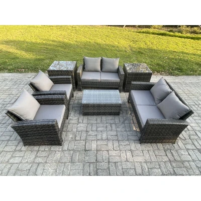 Garden Furniture Sets 7 Pieces Outdoor Rattan Manual Wicker Patio Sofa Chair Set with Coffee Table 2 Side Tables Dark Grey Mixed Fimous