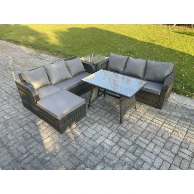 Garden Furniture Sofa Set Rectangular Dining Table Big Footstool Side Indoor Outdoor 7 Seater Rattan Dark Grey Mixed Fimous