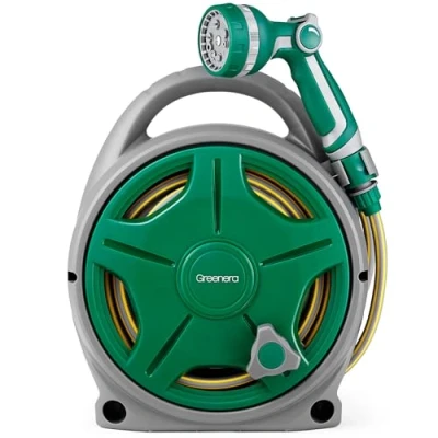 𝟭𝟬 𝗜𝗡 𝟭 𝗛𝗢𝗦𝗘 𝗥𝗘𝗘𝗟- Complete with a 20m hose and an adjustable nozzle gun,the nozzle gun allows you to adjust the water flow.The water hose comes with 10 different spraying modes, including mist, shower, cone, flat, full, center, angle ,vertical ,soaker and jet.Press loose to stop water, safe and energy-saving ,to meet various watering needs. 𝗟𝗜𝗚𝗛𝗧 & 𝗣𝗢𝗥𝗧𝗔𝗕𝗟𝗘- Portable Hose reel is 28.5cm long, 17cm wide, 35cm high and has a total weight of 2.7KG,and is designed with a carry handle,makes it easy for you to move it all around the garden,you can also attach it to the fence and wall, bringing an efficient and convenient experience to your garden. 𝟮 𝗦𝗜𝗭𝗘 𝗙𝗔𝗨𝗖𝗘𝗧 𝗖𝗢𝗡𝗡𝗘𝗖𝗧𝗢𝗥𝗦- The compact garden hose spray gun comes with a 1/2” and 3/4” quick hose pipe connector.Just take off the first section, then the water hose with reel can fit perfectly your faucet. 𝗜𝗗𝗘𝗟 𝗙𝗢𝗥 𝗠𝗨𝗟𝗧𝗜𝗣𝗘 𝗨𝗦𝗘𝗦- The versatile 20m hose reel suited for all watering purposes in the home such as garden,is an ideal choice for small, medium and large gardens.Also suit for watering ,car wash,pet shower,ground cleading,etc. 𝗦𝗜𝗠𝗣𝗟𝗬 𝗥𝗘𝗪𝗜𝗡𝗗 - The small garden hose reel is manual retract,When you finish watering,you could install the button and turn the shell slightly to pull the hose back for storage (empty the water in the pipe first).Please keep the hose straight and rewind slowly to avoid the hose jammed inside., Weight: 5.952481074 Pounds, Manufacturer: Greenera
