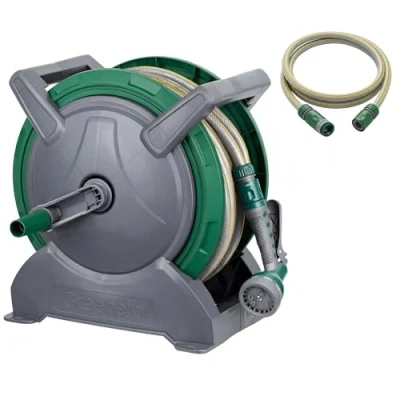 𝗔𝗺𝗽𝗹𝗲 𝗦𝘁𝗼𝗿𝗮𝗴𝗲 𝗖𝗮𝗽𝗮𝗰𝗶𝘁𝘆- The 30m Garden Hose Reel offers generous storage, ensuring you have sufficient space for extensive watering tasks around your garden or patio without hassle. 𝗗𝘂𝗿𝗮𝗯𝗹𝗲 𝗖𝗼𝗻𝘀𝘁𝗿𝘂𝗰𝘁𝗶𝗼𝗻 - Made from high-quality plastic, this garden hose reel is designed to resist wear and tear from regular use and harsh weather conditions, ensuring long-lasting performance.Equipped with expansion bolts, it can also be wall-mounted. 𝗨𝘀𝗲𝗿-𝗙𝗿𝗶𝗲𝗻𝗱𝗹𝘆 𝗗𝗲𝘀𝗶𝗴𝗻 - Featuring an ergonomic manual crank handle, it alsp can be easily stored in the card slot to save space.our hose reel allows for effortless winding and unwinding of the hose, making it simple and comfortable to use for watering and cleaning tasks. 𝗦𝗽𝗮𝗰𝗲-𝗦𝗮𝘃𝗶𝗻𝗴 𝗦𝗼𝗹𝘂𝘁𝗶𝗼𝗻 - This compact garden hose reel features a neat storage design that saves space while keeping your hose tidy and ready for use, preventing tangles and ensuring easy access whenever you need it. 𝗩𝗲𝗿𝘀𝗮𝘁𝗶𝗹𝗲 𝗪𝗮𝘁𝗲𝗿𝗶𝗻𝗴 𝗢𝗽𝘁𝗶𝗼𝗻𝘀 - Equipped with a 7-pattern spray nozzle and a 360° adjustable hose gun, this hose reel is suitable for all watering purposes in the home, such as garden,balcony cleaning needs, watering tasks for flowers, vegetable patches, etc., Weight: 10.582188576 Pounds, Manufacturer: Greenera