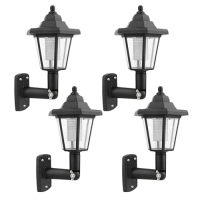 Traditional Exterior Lantern Light – Classic Outdoor Style: Set of 4 solar powered outside wall lights designed in a timeless Victorian style. These traditional porch lights add character to garden walls, patios, fences and front door entrances while enhancing classic exterior lighting décor. Solar Powered Lights Outdoor – Efficient & Wireless: Integrated triple solar panel strips convert sunlight into reliable garden lighting solar performance. After approximately 8 hours charging, enjoy up to 8 hours illumination. Ideal wall mounted solar lamps for energy-saving outdoor lighting. IP65 Rated Outside Lights Wall Mounted: These IP65 waterproof outdoor lantern lights are built for year-round durability. Weather resistant PP & PS construction makes them reliable exterior wall mounted lights for rain, frost and changing conditions. Adjustable Wall Mounted Solar Lamp – 180° Rotation: Customise your exterior lighting angle with the adjustable bolt and wing nut joint. Perfect for directing light across pathways, entrances, driveways or as decorative outdoor lamp wall mounted fixtures. Easy Install Solar Garden Wall Lights: All fixings included: raw plugs, wall screws, screw bolt and wing nut per light. Each lantern includes 1x AA rechargeable battery. Simply mount to wall or fence, switch on via the top panel and enjoy automatic evening illumination.
