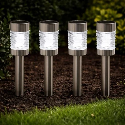 4pc Solar Lights Outdoor Garden - Measuring Approximately 42cm X 6cm, These Solar Outdoor Lights Are Crafted From Durable Stainless Steel And Glass For Extra Strength And Longevity. Featuring A Bright White LED Light, These Outdoor Garden Lights Are Perfect For Your Outdoor Garden Lighting. Solar Garden Lights Stakes - Using Energy From The Sun, Our Garden Stake Lights Will Charge Throughout The Day, And Then Automatically Illuminate At Night, Without Needing To Switch Off Or On, With A Full Charge, Our Solar Path Lights Will Light For 6+ Hours. Durable Outdoor Lights Solar Powered - Using High Quality Materials, Our Solar Powered Garden Lights Are Extremely Sturdy And Long Lasting. With Stainless Steel Being Used For The Body, They Are Weather Resistant And Anti Rust, And The Lens Uses Glass To Ensure Your Solar Garden Stake Lights Have Optimum Light Dispersal. Modern Outdoor Lighting - With A Brushed Stainless Steel Finish, Our Outdoor Solar Lights For Garden Are Extremely Modern In Both Style And Function. With Heavy Duty Materials, And Using An Inbuilt Solar Panel With A Dusk To Dawn Sensor, Each Solar Garden Light Will Be Perfect. Versatile Solar Powered Outdoor Lights - Using A Stake For Installation, Our Outdoor Solar Lights For The Garden Can Be Placed Anywhere In Your Outdoor Space. From Pathway Lights, Driveway Lights, Flowerbeds, Planter And Even Garden Borders, The Top Can Even Be Screwed Off And Used As A Solar Lantern.