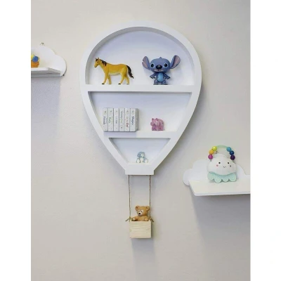 General description Add a little magic to your child's themed bedroom or nursery with these unique Hot Air Balloon Shelves. Perfect for kids or any room in the home, these charming white wooden shelves will quickly become a talking point. Their fun and playful designs might even encourage children to clean up after themselves, making them a great addition to any child's bedroom or nursery storage furniture. Technical specifications Dimensions: H 73 cm (with rope), H 51 cm (without rope), W 38 cm Material: High grade lightweight wood Color: White Installation Designed for easy installation Usage Ideal for children's bedroom or nursery storage Can be used to create a child-friendly themed environment Provides ample storage or display space