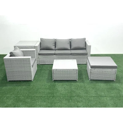 Garden Outdoor Furniture Set 5 Seater Rattan Sofa with Big Footstool Armchair Side Table Light Grey Mixed Fimous