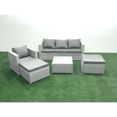 Garden Outdoor Furniture Set 6 Seater Rattan Sofa with 2 Big Footstools Armchair Light Grey Mixed Fimous