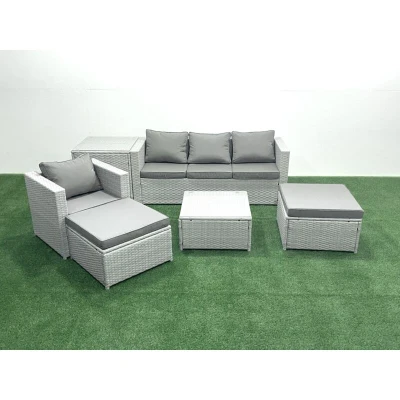 Garden Outdoor Furniture Set 6 Seater Rattan Sofa with 2 Big Footstools Armchair Side Table Light Grey Mixed Fimous