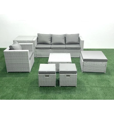 Garden Outdoor Furniture Set 7 Seater Rattan Sofa with 3 Footstools Armchair Side Table Light Grey Mixed Fimous