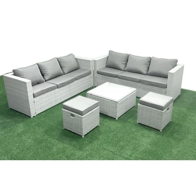 Garden Outdoor Furniture Set 8 Seater Rattan Sofa with 2 Small Footstools Light Grey Mixed Fimous