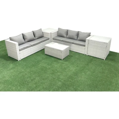 Garden Outdoor pe Rattan Furniture Set 6 Seater Sofa with 2 Side Tables Light Grey Mixed Fimous