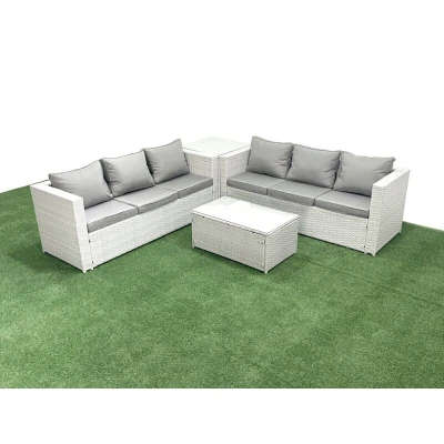 Garden Outdoor pe Rattan Furniture Set 6 Seater Sofa with Side Table Light Grey Mixed Fimous