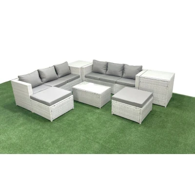 Garden Outdoor pe Rattan Furniture Set 8 Seater Sofa with 2 Big Footstools Side Tables Light Grey Mixed Fimous