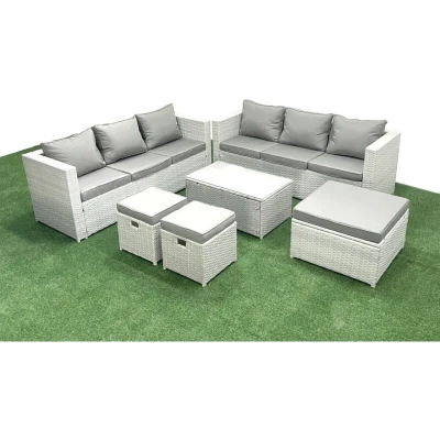 Garden Outdoor pe Rattan Furniture Set 9 Seater Sofa with 3 Footstools Light Grey Mixed Fimous