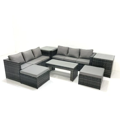 Garden Outdoor Rattan Furniture Set with Sofa Coffee table 2 Big Footstools Side Tables Dark Grey Mixed Fimous