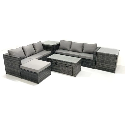 Garden Outdoor Rattan Furniture Set with Sofa Coffee table 3 Footstools 2 Side Tables Dark Grey Mixed Fimous