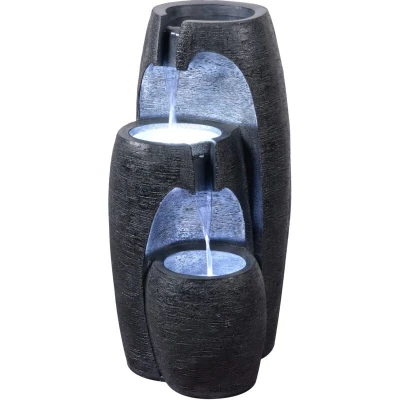 Garden Outdoor Water Feature Modern 3 Tier Cascading Urn Fountain With led Lights Black Teamson Home