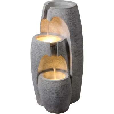 Garden Outdoor Water Feature Modern 3 Tier Cascading Urn Fountain With led Lights Grey Teamson Home