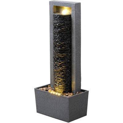General description This modern outdoor water fountain from Teamson Home adds style and tranquility to your outdoor setup. With its warm glow lighting and steady water flow powered by an electric pump, it creates a perfect balance of movement, sound, and visual texture. Crafted from durable polyresin with a dark grey finish, this fountain is built to withstand outdoor conditions while enhancing your garden or entryway. Technical specifications Dimensions: 13.3'' L x 8.5'' W x 32.3'' H Material: Durable polyresin Color: Dark grey Installation Plug-in system for consistent water flow No complicated installation required Usage Ideal for masking background noise Softens hardscaped areas Creates a more complete outdoor space Other information Weather-resistant build designed to withstand sun, wind, and rain Versatile styling complements various garden styles from modern to rustic Built-in lighting adds a soft glow after dark