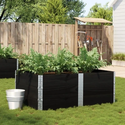General description This stackable wooden garden planter is perfect for growing a variety of flowers, vegetables, or plants. It is an excellent choice for DIY enthusiasts looking to enhance their gardens, balconies, front porches, patios, and more. Technical specifications Colour: Black Material: Solid pine wood Overall dimensions: 150 x 100 x 60.5 cm (L x W x H) Board height (each): 19.5 cm Board thickness: 20 mm With hinged galvanised metal corners Assembly required: Yes Compatibility and accessories Can be stacked with additional units (not included) to accommodate different heights. Installation Assembly is required upon purchase. Usage Ideal for growing flowers, vegetables, or plants. Open bottom design ensures proper water drainage and breathability for plants. Foldable design allows for easy storage and transportation when not in use. Other information