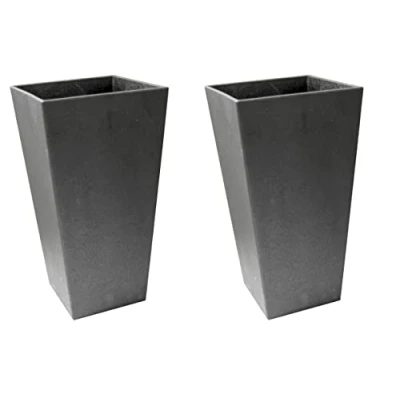 Garden Planter Sonata in Slate or Steel Grey Decorative Self Watering Flower Pot Recycled Rubber Tyres Durable Weatherproof No Cracking Fading Indoor Outdoor (Steel 50cm x2)