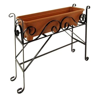 General description The Trough Stand is a handmade garden planter crafted in our Sussex-based factory. This elegant and traditional design features a solid steel stand with a removable rectangular trough available in terracotta or charcoal colors. The black plastic coating protects it from rusting in harsh weather conditions, making it a durable choice for any garden. Technical specifications Height: 60 cm (24 inches) Length: 72 cm (28 inches) Width: 21 cm (8 inches) Usage The standalone Trough Stand is versatile and can be used to plant a wide variety of flowering plants. Its classic design makes it ideal for formal gardens, and it can easily be moved from one location to another, whether on the patio or in the garden. Use it to create a stunning display of seasonal flowers.