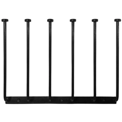 General description Keep your floor totally clear of tripping hazards by organizing your wellington boots on the wall with the Wellington Wall Mounted Boot Rack. This stylish and sturdy rack is designed to hold three pairs of boots, ensuring they are stored off the ground to minimize clutter and mess. Its robust metal frame, coated in rust-resistant black plastic, makes it suitable for both indoor and outdoor use, allowing you to place it by your front door or in your garden without fear of damage. Technical specifications Material: Plastic-coated solid steel Dimensions: 47cm High x 61cm Wide x 15cm from the wall (19" High x 24" Wide x 6" from the wall) Capacity: Holds up to three pairs of wellington boots Other information Supplied without fixings