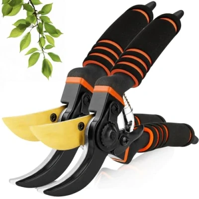 Garden Secateurs, Gardening Pruning Shears, 2PCS Scissors, Bypass Pruners for Branches, Hedges and Flowers