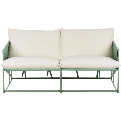 General description This oversized 2-seater sofa is designed to offer both style and comfort, making it a perfect choice for modern living spaces. Its sleek metal frame provides a clean, architectural look, while the generously padded cushions create an inviting place to relax. Upholstered in waterproof fabric, the sofa is exceptionally durable and easy to maintain, with removable covers on the armrests for added convenience. Whether placed in a living room, on a terrace, or in the garden, it adds elegance and functionality to any setting. For a coordinated arrangement, pair it with the matching armchair from the collection to create a cohesive and stylish lounging area. Technical specifications Product Type: Garden Sofa Style: Industrial General Color: Green, Beige Shade: Light Beige Main Material: Steel Additional Material: Fabric Material Composition: 100% Polyester Seats Up To: 2 People Dimensions: Armrests Height: 75 cm, Depth: 94 cm, Seat Height: 37 cm, Width: 160 cm, Height: 88