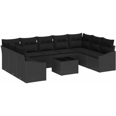 Garden Sofa Set 10 pcs Black Poly rattan Vidaxl