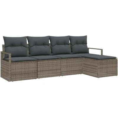ManoManoGeneral description This outdoor sofa set epitomizes modern elegance with its clean lines and practical functionality. Crafted for gardens and terraces, it combines style with the sumptuous comfort of poly rattan cushioning, inviting users to relax and enjoy outdoor living. Technical specifications Colour: Grey Material: Poly rattan Seat width: 55 cm Seat depth: 55 cm Max weight: 440 kg Assembly required: Yes Delivery contains: 2 x Centre seat 2 x Arm sofa 1 x Footstool EAN: 8721158959256 SKU: 3346339 Brand: vidaXL Other information