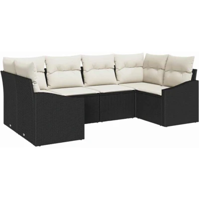 Garden Sofa Set 6 pcs Black Poly rattan Vidaxl