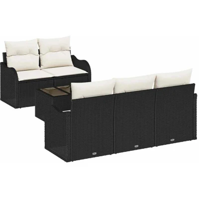 Garden Sofa Set 6 pcs Black Poly rattan Vidaxl